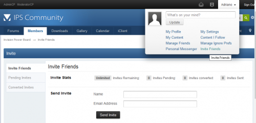 This hook is an upgrade of INVITE SYSTEM for IP.Board 3.0.X, by beeman.154 downloads