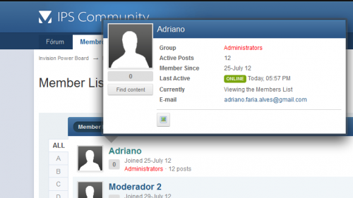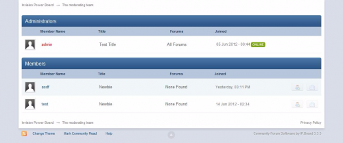Adding any Group to your "Moderator Team Page" Altering What order the Selected Groups display Easy drag and drop ordering When No groups are chosen, it Defaults to the IPB internal or If the application has been disabled. pseudo change the "title" for groups from group name to whatever you wish. Secondary Groups (if enabled, will search secondary groups of members for groups). Hide Members (you can now choose to "hide" members out of groups). 2 layouts: New Style, works similar to how IPB 3.3+ renders its team moderator page with pagination, Old Style, how custom moderator team page works now, creates individual blocks for each group. add a member to a group.(it will be a pseudo add like changing the group name, they will not inherit the permissions from the group they are displayed in). on the display page, you can now choose to show either the user group or their title, and either their join date or last active time. added settings module can organize members by name,group,join date, last login date, and then sort them by asc or desc. new administrator restrictions available.128 downloads