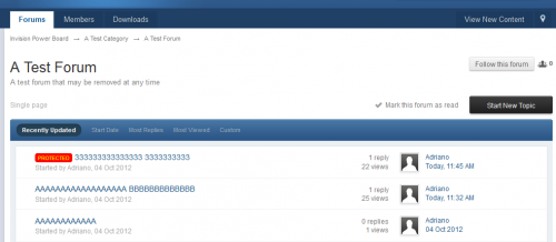 Settings: [*]Logs: If enabled, will create a log at every failed/successful attempt of login on a protect password topic [*]Groups: User groups who will can create topic with password [*]Exempt Groups: If the topic author requires a password to access the topic, you can select groups who will NOT need to enter the password in. [*]Forums: Specify which forums can have their topics created using password