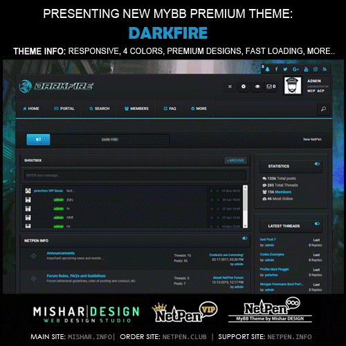 DarkFire is Premium Responsive MyBB 1.8 Theme for Gaming Forums, but also for any other usage too.