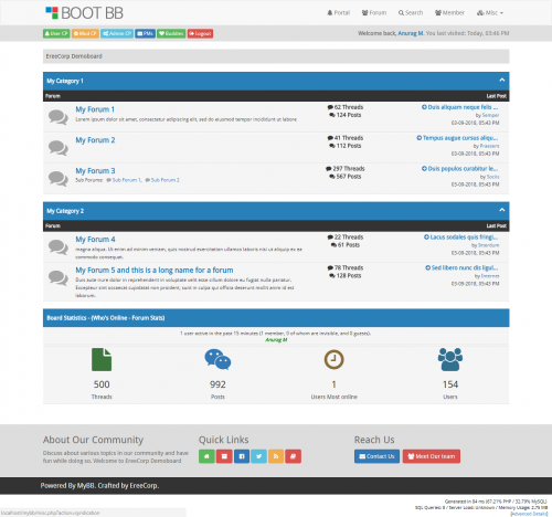 BootBB theme for MyBB 1.8 is a fully featured light and responsive theme with lots of features. This theme uses Bootstrap 3 framework, Font-Awesome Icons and some jQuery plugins. Some of the features are listed below: