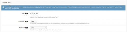 Setup a preferred local time and timezone to send out birthday greetings. Added support for Chatbox birthday alerts. Added support for status updates birthday alerts. Improvements to the main birthday widget and option to modify message from acp. Choose your own format for the today's date quick tag. Redesign of birthday greeter settings. Added support for Chatbox birthday alerts.