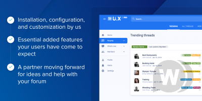 Designed with the ideal approach for your forum to increase community interaction, offer a high-quality user experience, and increase earning potential. UI.X Pro is a combination of our knowledge gained after over a decade of helping customers build thriving communities and methods utilized by giants in the social media industry. UI.X Pro has the tools and support you need with installation, configuration, and customization by us; the essential added features your users have come to expect; and a partner moving forward for ideas and help with your forum.