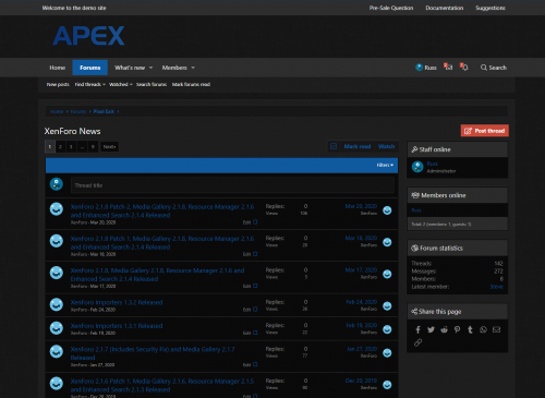 Apex comes packed with options included in the parent style XenBase. Enjoy not having to install add-ons or do some of the most popular template edits. Makes changes simply by enabling the options you want, no extra overhead as great care was taken to make sure only the needed CSS or HTML is called properly.