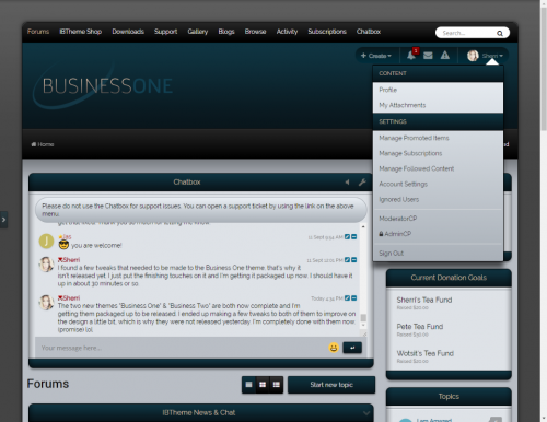 The blue color scheme can be modified easily with a few simple clicks in your ACP theme settings, and your members can customize the theme themselves by choosing their own background image from a preset array!
