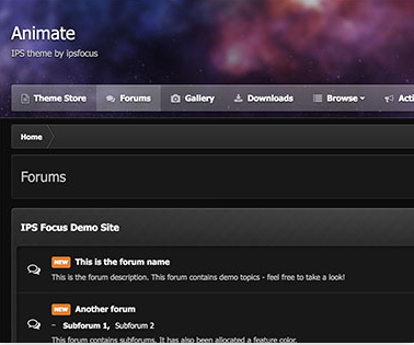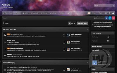 Animate is a dark style for the IPS Community 4.2 forum. The main feature of the style in its cap, high-quality animation serves as a good sedative for users. Built-in social system. networks, allows you to easily configure links, adaptive layout and many other "goodies" you can take a look at the demo.