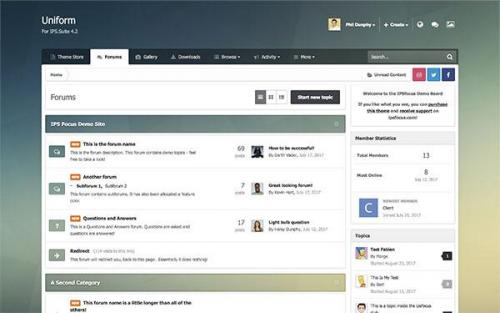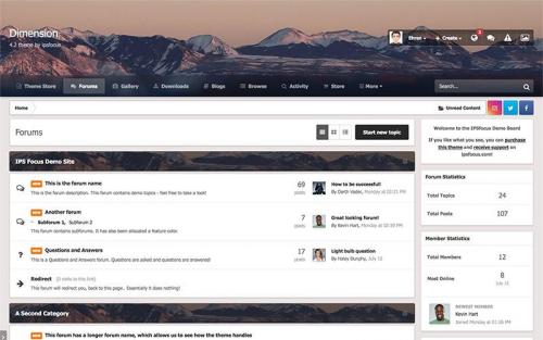 Dimension is a minimalistic theme for IPS.Suite with a unique header effect. Once scrolled, the header collapses into a fixed bar at the top of the page, providing easy access to your navigation links.