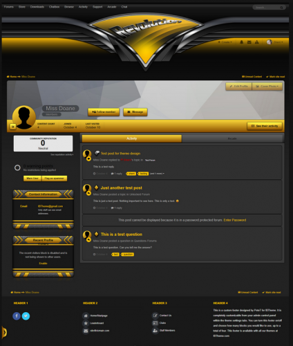 Dreadnought is modern, Creative, Super advanced theme comes with tons of customization's and features including responsive drop down navigation, Google fonts, custom html full-sized widgets, Advanced footer, Social links, News ticker, Custom forum category styles, Six of awesome article templates and a powerful touch slider that can be integrated with (IP.Content) as a complete package for infinite slider, theme colors are entirely customizable with easy settings, You can manually change ALL colors and switch between a Dark or White scheme with color settings. Dreadnought theme is beautifully responsive and mobile friendly, it is best suitable for Gaming website, Included with Dozen of useful settings and features for example adding a fixed social link on sidebar or footer, also two custom widgets to show on top or bottom of your website you can place it anywhere you want for example Registration page, Login page, Staff directory page, Search page, User profiles page...etc) You can also set user group permissions for each of the widgets
