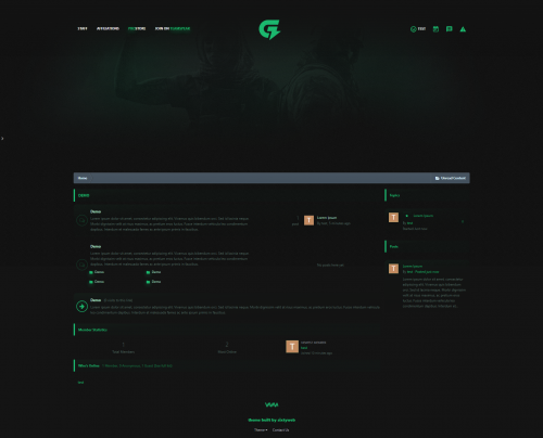 This is a custom version of „Deflection” good for gaming communities. The theme was made by a good friend of mine, you can visit his website here : click ( if you wanna hire him ) To edit the links menu and the logo, go in „globaltemplate” and search for these lines !