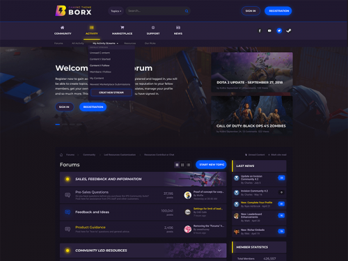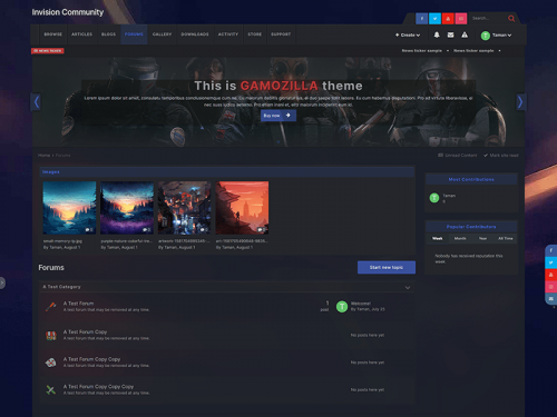 Gamozilla is a new, dark style theme for your forum. Great design combined with a huge number of settings. The theme is suitable for any forums of different directions. Articles and sliders.