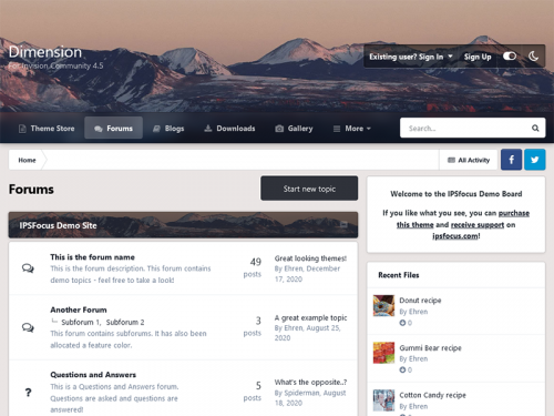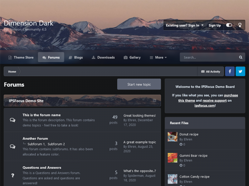 Dimension is a minimalistic theme for IPS.Suite with a unique header effect. Once scrolled, the header collapses into a fixed bar at the top of the page, while also blurring the background image, placing focus on your navigation links.