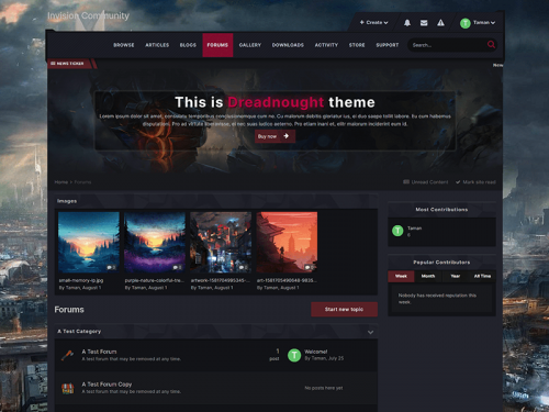 Titan is the ultimate gaming theme, based upon a large wallpaper image which is blurred behind textured navigation and category bars. Easily upload your own image via the theme settings to completely change the colour scheme, or let your members choose from a predefined selection.