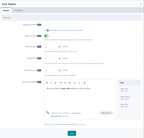 Enable/disable override of force showing of new posts. Set how many seconds between each check for new posts. Set how long before new posts stopped being checked. Set how many seconds extra each new attempt for new topics will increase.8 downloads