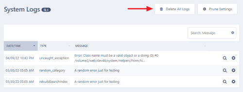 This plugin adds a (much-needed) "Delete All Logs" button in the System Logs area to easily delete all logs.