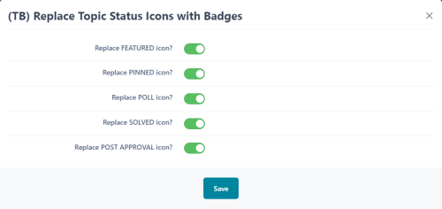 This plugin allows to replacement of the topic status icons in the forum view and topic view with badges.