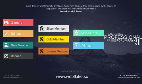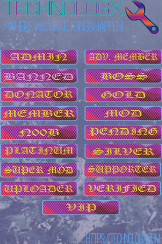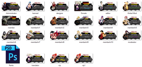 Owner Admin Moderator Member Uploader GFX Designer PSD is included to make all the changes you will need to, to be able to make your own custom ranks to fit your community needs.