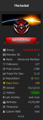 You now have the ability to change the members birthday to show their age instead (As requested) Changed the maximum width of the avatar you can select to a maximum of 200px (As requested) Changed the avatar radius from a selection list so you can now add your own amount (As requested)543 downloads