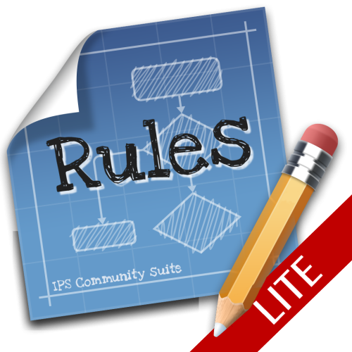 Over 500 built in events, conditions, and actions for stock IPS products and contributed apps. Rule actions can be configured to happen in real time or at a future time. Schedule and unscheduled actions from inside of rules or manually through your ACP. Built in lists of “replacement tokens” for including variable data in text entry fields (like email content) Fully extensible by other apps and plugins to add new tokens, events, conditions, and actions. Look for Rules Expansion Packs in the marketplace which add new events/conditions/actions. Create your own custom actions within the rules app which can be invoked by rules. Create your own custom data fields for any entity on your site to manipulate with rules. Rules can be grouped together into rule groups and rule sets for easy management. Easily import and export rules and sets to share with friends or distribute as your own rule packs. Built-in rule debugging console for full visibility of what your rules are doing on your system. Built in rules error and performance logging console. Complete Stock ECA List: