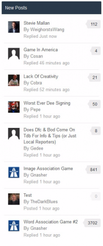 Custom block Title: I hate having to go into the language files just to edit a title. Probably won’t help with translations, but that could be changed later. Selectable forums: Select which forum’s you wish to display posts from. Your members will only see the posts that they have permission to view. Number of Posts: Select how many posts you wish to display to your members. Member Avatar: Select whether to display member avatar or not. Topic Post Count: Select whether to display a post topic count next to the title. Post Comment: You can display a post teaser in the same way as the IPB Post widget and control how many lines of the post comment you wish to display. This is the first version and no doubt could contain some bugs or as I like to call them, misplaced code and coffee driven lapses.