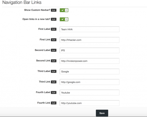 Easy & simple to use. Custom navbar labels & links. Displays up to 4 custom links in the navbar. Ability to show or hide the Custom Navigation Bar. Ability to open links in a new window/tab.92 downloads