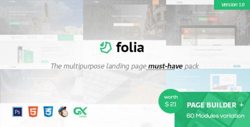 Folia – Landing Pages Pack of + 70 multi-purpose modules with the page builder. You can create unlimited variations and custom lanbding pages by yourself within minutes. with The HTML Builder included you make your desired landing page with all the options included taht let you edit text and images and everything you wish. we have included 6 High quality Layered PSD layouts to give you all the assets you will need.