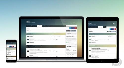 Uniform is a light, modern theme focused around a background image that applies a single background image throughout the entire forum, including category panels and forum icons. The theme is filled with customizable features that can be easily enabled or disabled from the admin control panel.