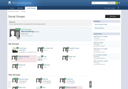[color=rgb(40,40,40)][font=helvetica][size=3][size=3]The Social Groups application allows for the creation of special interest oriented groups on your website. The basic idea behind the app is very similar to the groups system on Facebook, but it expands upon the idea to provide more features than a simple Facebook group page. This app is perfect for any community where there are multiple sub-interest groups within the site. This app will facilitate the creation of a tighter knit community through the creation of more intimate and specialized interactions. It allows for sites with tens of thousands of members to provide a specialized niche for each member without crowding the site. So whether you are a gaming clan trying to organize separate factions or a large community centered around a hobby (cars) or an educational focus (university), you can serve the needs of your members' unique interests with this app.[/size][/size][/font][/color]