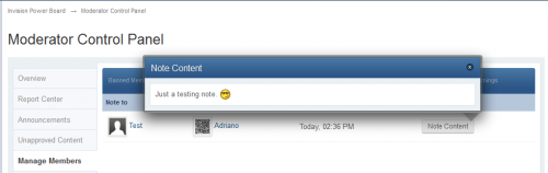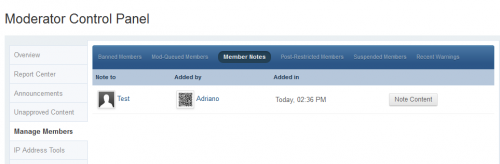 - Now you have a tab on MANAGE MEMBERS (Moderator CP) where you can view all member notes