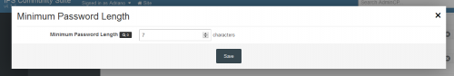 IMPORTANT: BE ADVISED THAT EXISTING USERS WITH PASSWORD LENGTH LESS THAN THE SETTING VALUE WON'T BE ABLE TO LOGIN. THEY WILL HAVE TO USE THE RESET PASSWORD FEATURE ON LOGIN SCREEN, BY CLICKING IN THE LINK "FORGOT YOUR PASSWORD?".