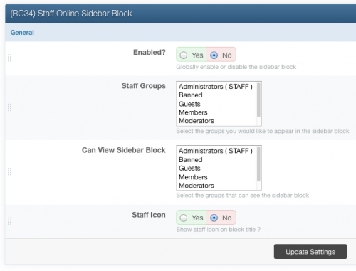 About This File Don't be a leech, click the reputation button if you want to get more files in the future. Adds online users from staff usergroup(s) of your choosing to the sidebar.
