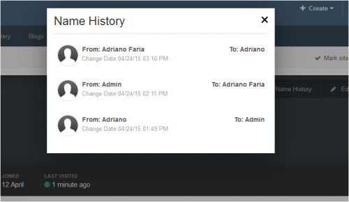 This plugin will restore a feature from IP.Board 3 that allows users to view the history of changing display name.