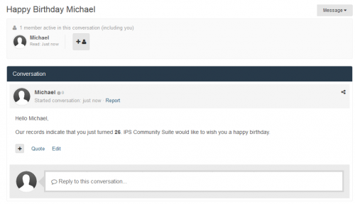 - Create new birthday topics or add replies to a "birthday topic" when there is a members birthday.