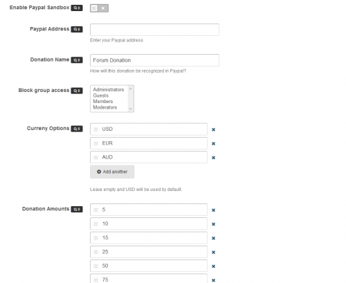 Simple to configure plugin that adds a Paypal donation form to your sidebar. With the option to enter your own custom html donate code. Also includes group permissions as well as a percentage status bar of your donations based on an entered goal amount. For more features and the ability to track donations