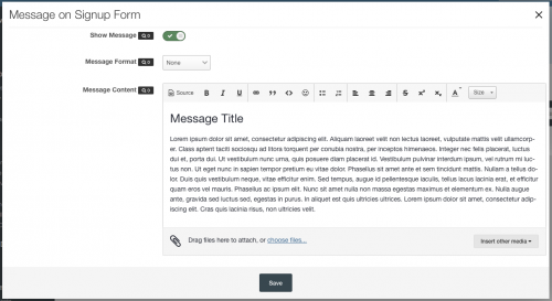 A simple plugin that adds a text block at the top of the user signup form. I created this for a site that wanted to highlight some of their T&Cs at the top of the form but it may have other uses.