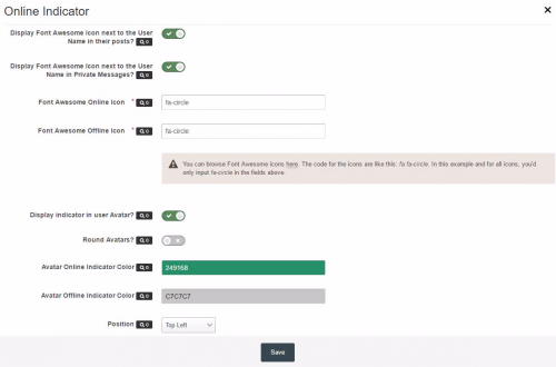 You are able to specify the Font Awesome icon for both statuses, online and offline.