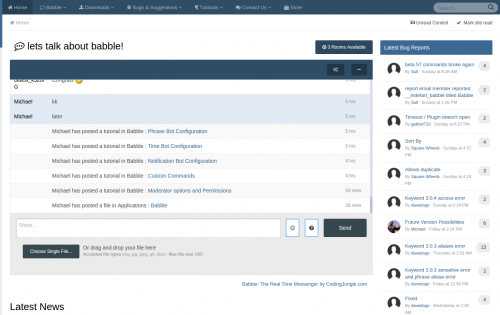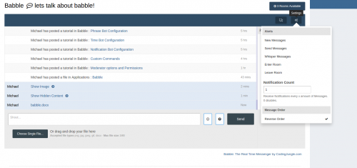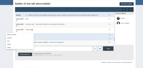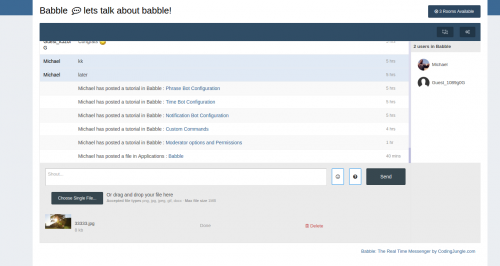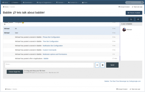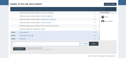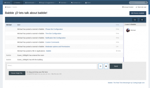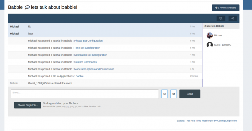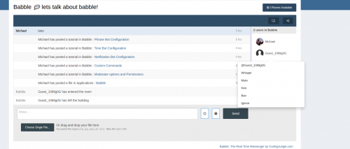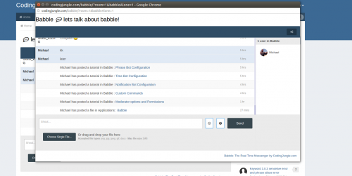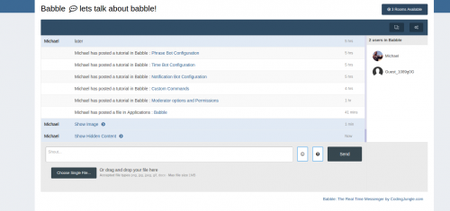 Babble is a real time chat system using node.js and sockets. It uses less resources and doesn’t rely on long polling or interval scripts to check for new message. Babble is fully featured with those features laid out below.