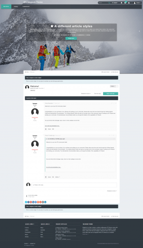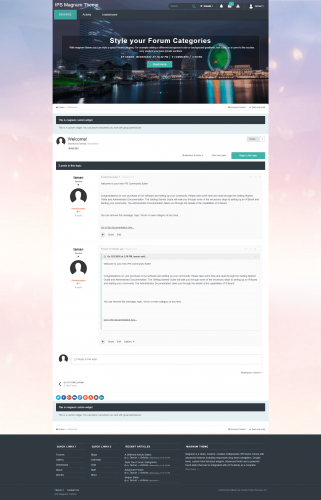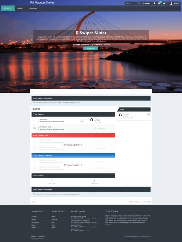Magnum is a clean, modern, creative multipurpose IPS theme comes with advanced features including responsive drop down navigation, Styling a specific forum category, Google fonts, custom html full-sized widgets, Advanced footer, A different article styles, and a powerful touch slider that can be integrated with (IP.Content) as a complete package for infinite slider.