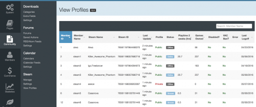 This app will obtain data from Steam for your users and place it in your IPS Community database for use anywhere on your site. Your board will re-load your members Steam Online information, in configurable batches, every 2 minutes, so you always have up to date information without impacting load times of your community pages.