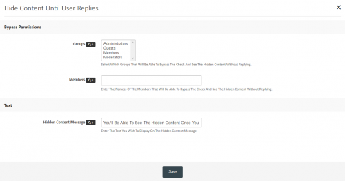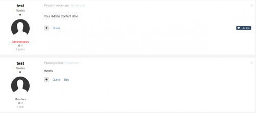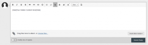 This plugin allows your members to hide part of the content in their posts so other members will need to reply to the topic before being able to see the hidden content. Thanks to a powerful custom bbcode, there are no file edits required. Additionally, the plugin has an internal cache to save all the topics checked each session which will reduce the number of queries used. Thanks to that, only one additional query is used when viewing a topic and sometimes no queries at all!