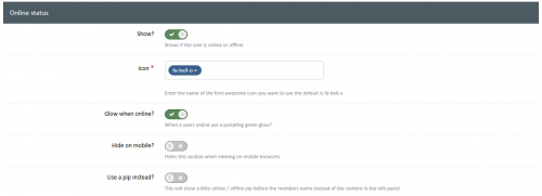 - Choose to use a pulsating green glow for when the users online