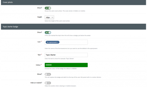 - Show/Hide a topic starter badge or field to the info panel (If the user is the topic starter)