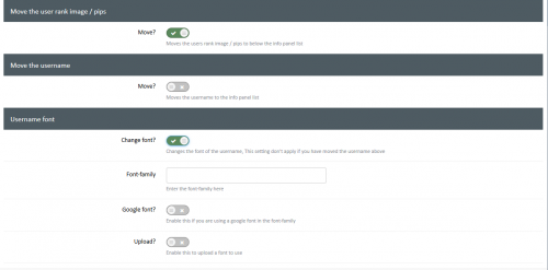 - Move the users rank pips / rank image to below the info panel