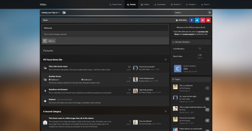 Titan is the ultimate gaming theme, based upon a large wallpaper image which is blurred behind textured navigation and category bars. Easily upload your own image via the theme settings to completely change the colour scheme, or let your members choose from a predefined selection!