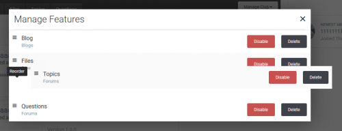 - Delete features: just like on ACP, with option to delete content or move it to another club/category.