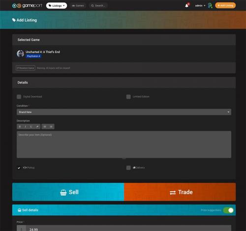 You can even set additional charges for every game. (Example: Trade Game X for Game Y + 10$) -