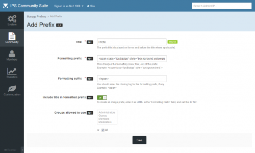 This application enhances IPS 4's built-in tag and prefix system. It adds custom styling and fine-grained control over prefixes, plus new settings, enhancements, and helpful moderation tools. Prefixes are explicitly created through the Admin CP, and can be chosen from a separate prefix dropdown when creating a topic or other prefix-enabled content.