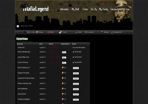 Originally developed as a mafia themed browser-based online text-based game codenamed mafialegend, this script will allow you to run your very own game whether it be mafia related or something completely different.
