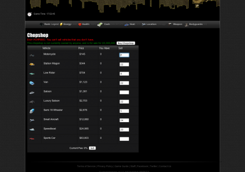 - Chopshop system – Sell vehicles here for a fee settable by the owner of the chopshop. You have to visit different cities to find the best prices and lowest fees.