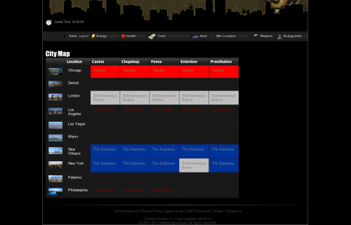 - City Map system – Nice overview of all the mobsters/families which control a city or business. Color coded.