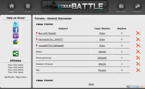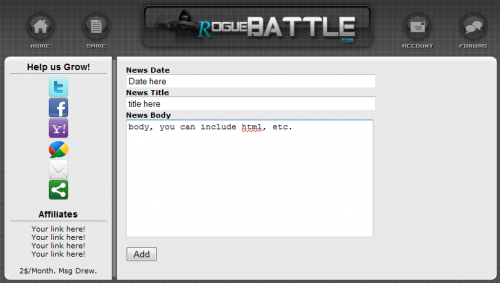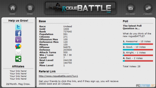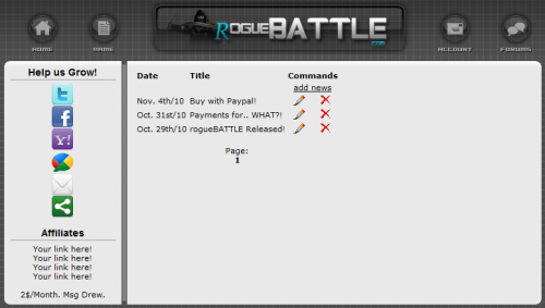 Ever wanted your very own online multi-player RPG? Well now’s the time. rogueBATTLE is easily customizable via CSS, and with the ability to edit most of the in-game settings, you could be running your very own RPG in minutes!